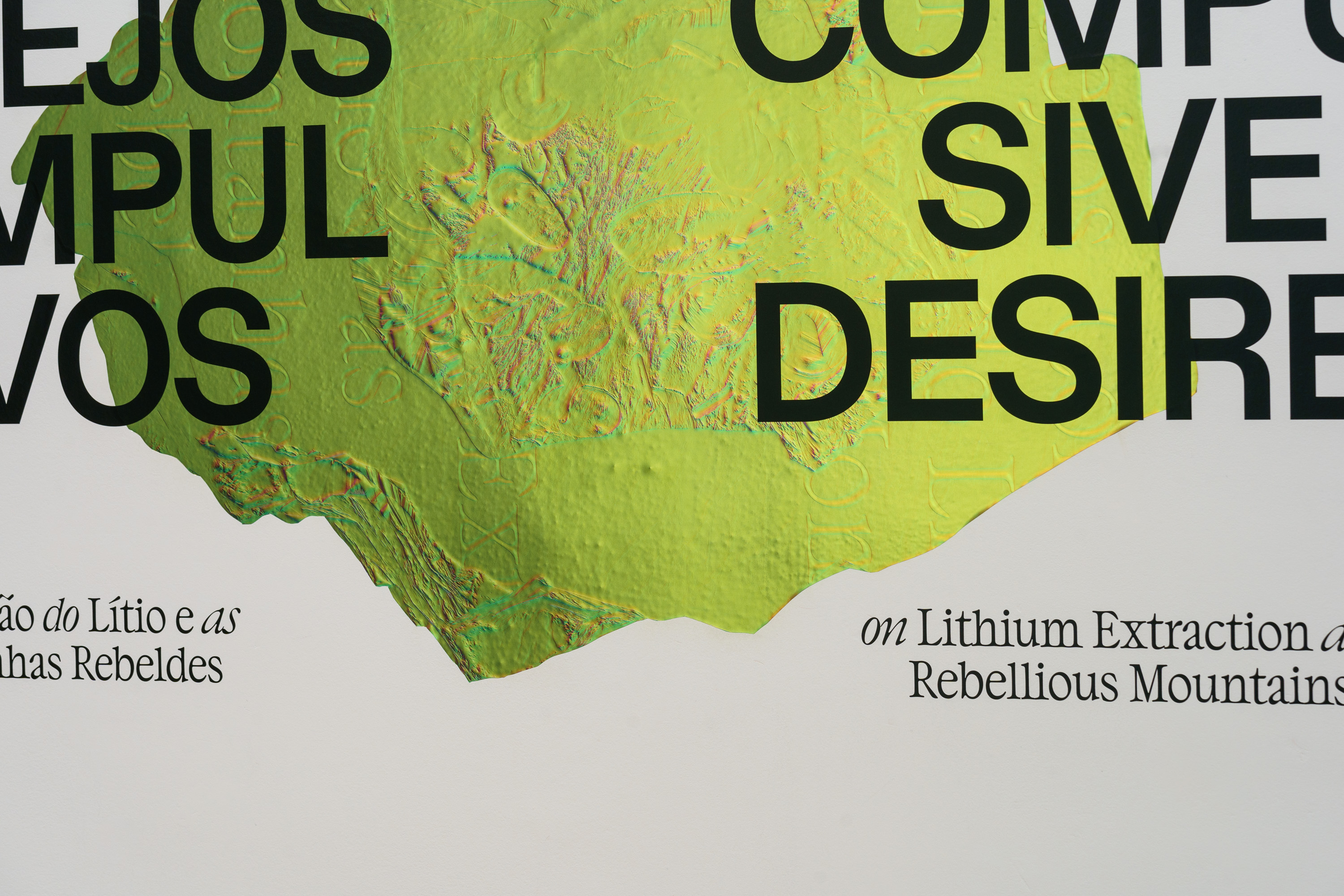 Art direction and visual identity for the exhibition COMPULSIVE DESIRES: The Extraction of Lithium and Rebellious Mountains,Galeria Municipal do Porto, Porto, March—May 2023.